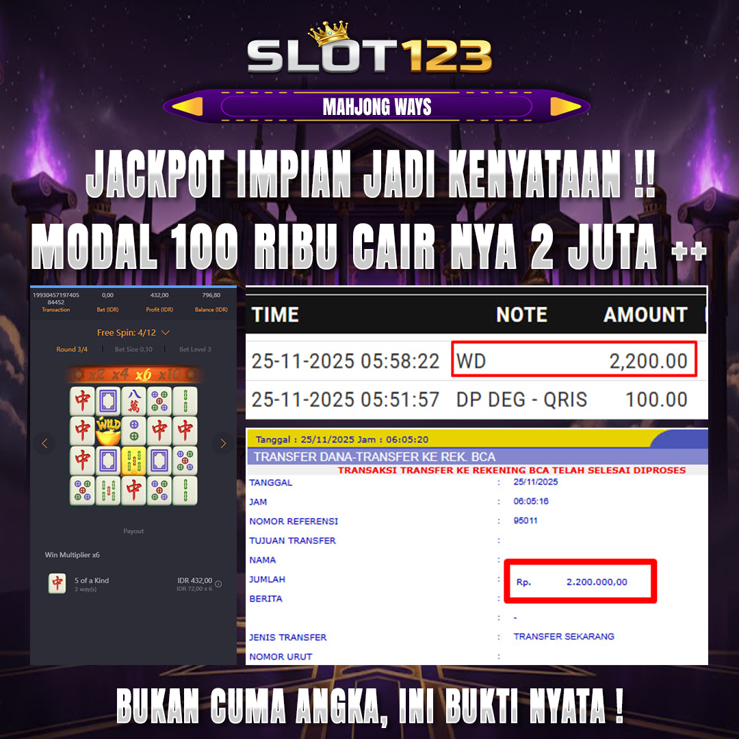 SLOT123 menghadirkan game jackpot vip yang di lengkapi fitur khusus new member hanya dengan modal deposit 100k dijamin akan withdraw 2,2+ juta malam ini.